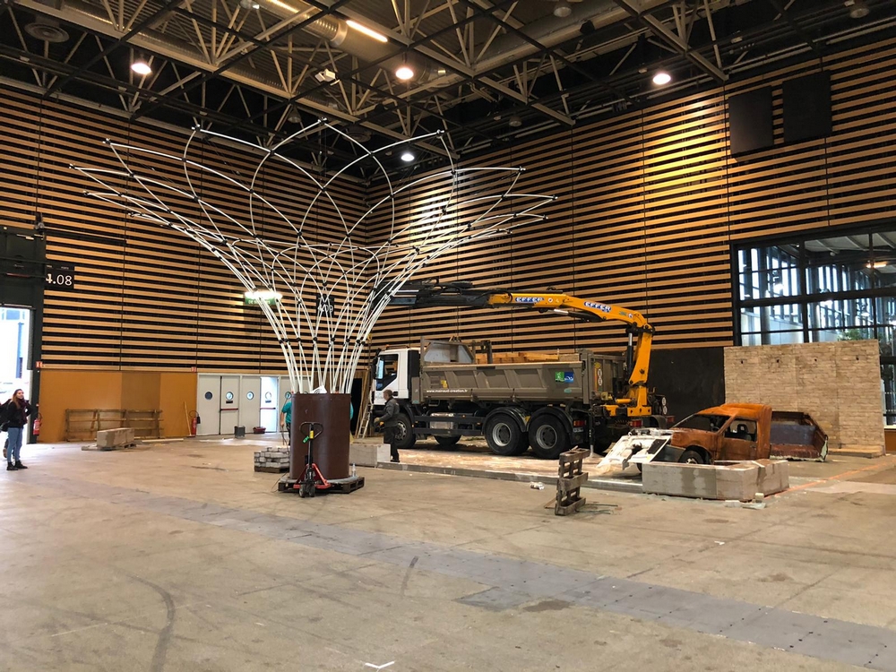 Curieux de connaître les coulisses de Paysalia ? Voici un cliché pris lors de la phase de montage d'un des jardins du Carré des Jardiniers. Tout a été créé sur place, 4 jours avant le lancement du salon Paysalia. Nous remercions chaleureusement toutes les personnes qui ont travaillé dur, dans un délai très serré, pour vous proposer cette belle édition !